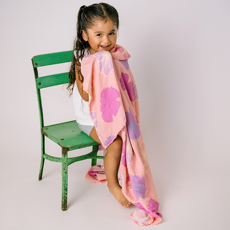 ピンク、パープル、ピーチの色合いが絶妙なバランスで調和するフローラル柄『seaflower』が、目に鮮やかなデザインとなって帰ってきました。