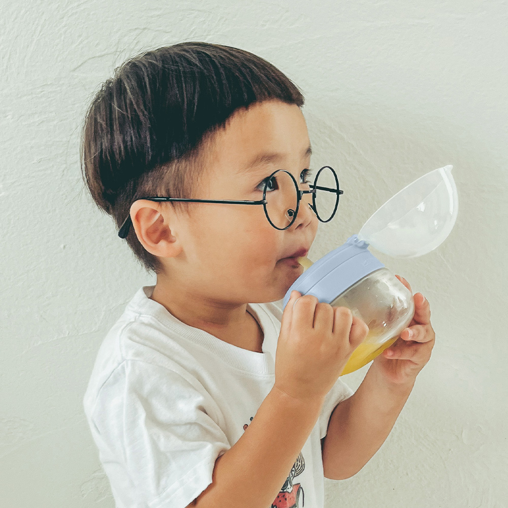 ・子どもの手に合わせてデザインされた、ぽってりとしたハンドルと幅広のボトル