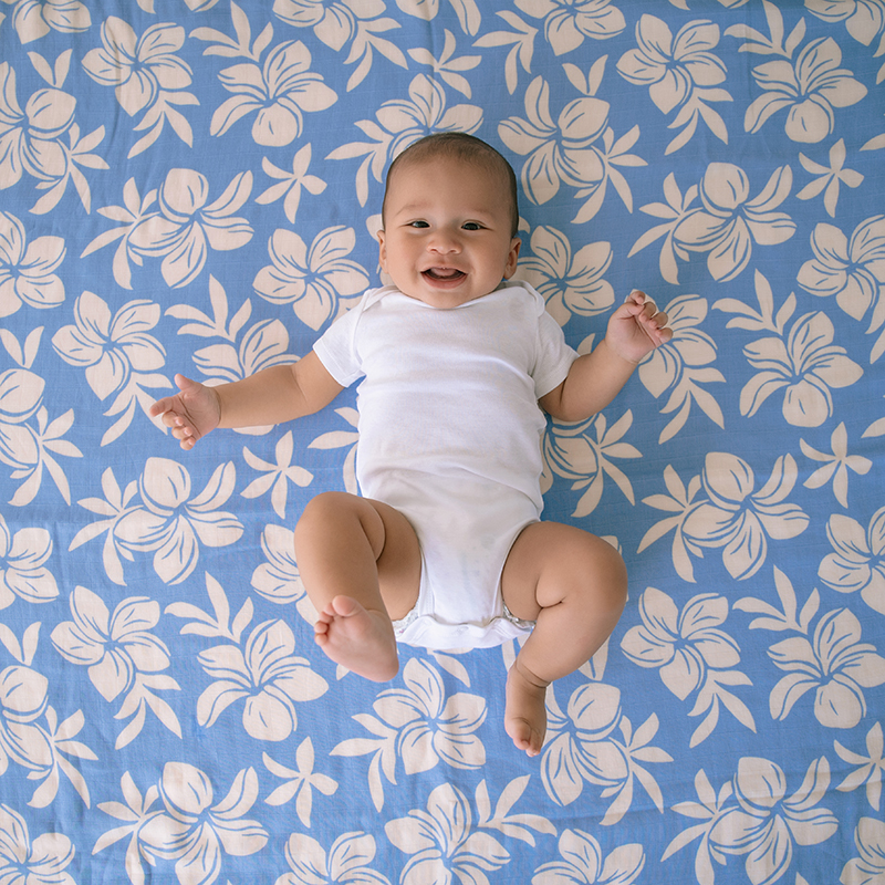 肌寒い夜、アロハテイストのシルクのように肌触りがよくやわらかいベビーブランケットでちょっとラグジュアリーな時間をお過ごしください。